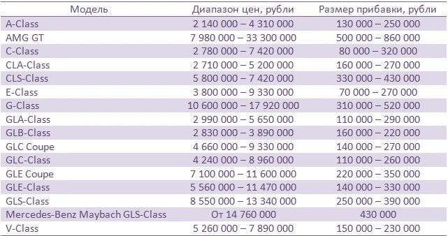 Исключением стали пикап Mercedes-Benz X-Кlassе и универсал Mercedes-Benz CLA Shooting Brake. Ценники на остальные модели «потяжелели» на 70 000 — 860 000 руб. или на 1,9−10,4% от их прежней стоимости.