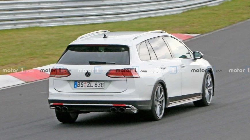 Никакой маскировке на автомобиле нет, поэтому хорошо видно, что он получил передний бампер и пластиковую облицовку колёсных арок от вседорожного универсала Volkswagen Golf Alltrack, а также колёса, 4-гранные выхлопные патрубки и синие тормозные суппорты от «горячего» хэтчбека Volkswagen Golf R.