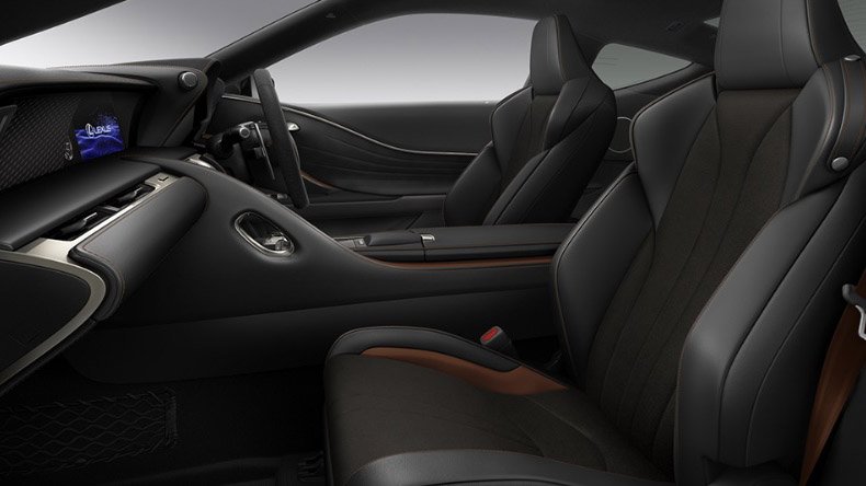 В нём будут выполнены топовые комплектации LC 500 и LC 500h. От стандартных версий оно отличается спойлером, сделанным из армированного карбоновыми нитями пластика, 21-дюймовыми колёсами, а также тонированной оптикой и покрытой чёрным хромом решёткой радиатора.