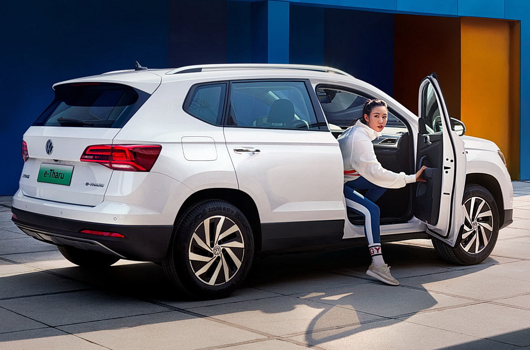 Новый Volkswagen e-Tharu оснащён электродвигателем, развивающим мощность в 134 л. с. и крутящий момент в 290 Нм, приводящим в движение передние колёса.