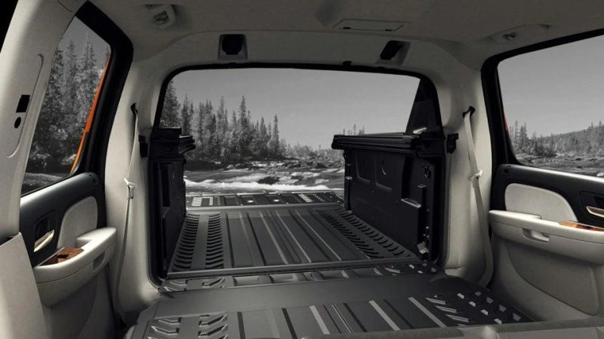 Дело в том, что изначально его планировали оборудовать полностью складывающейся стенкой, отделяющей кабину от кузова – такой же, как у пикапа Chevrolet Avalanche, сделанного на базе огромного внедорожника Chevrolet Suburban.