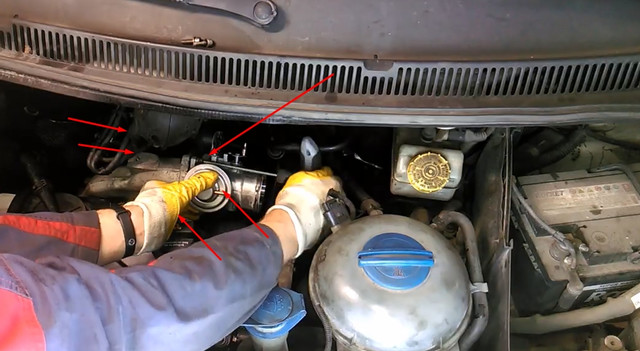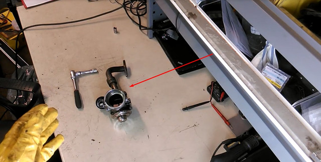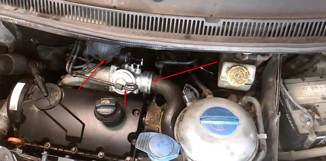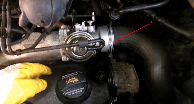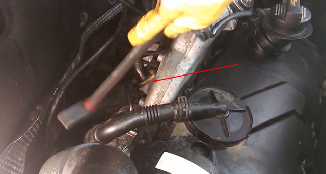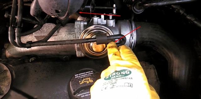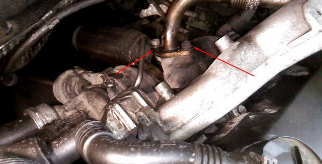 Откручиваем трубку от клапана которая подает выхлопные газы. Болты под головку на тринадцать.