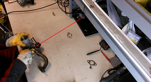 С помощью шестигранника на пять откручиваем три болта крепления клапана EGR. К двум болтам сверху хороший доступ, а к нижнему лучше всего подобраться с удлинителем и плавающей головкой.