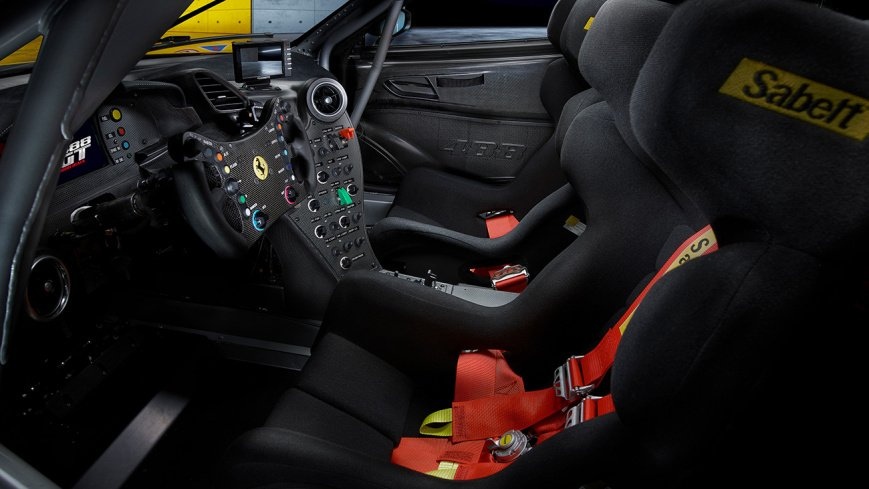 В салоне болида установлены 2 ковшеобразных гоночных кресла и телеметрический комплекс V-Box, имеющий возможность копирования информации на флешку.