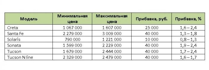 Подробнее с новыми ценами на автомобили южнокорейской марки можно ознакомиться в данной таблице: