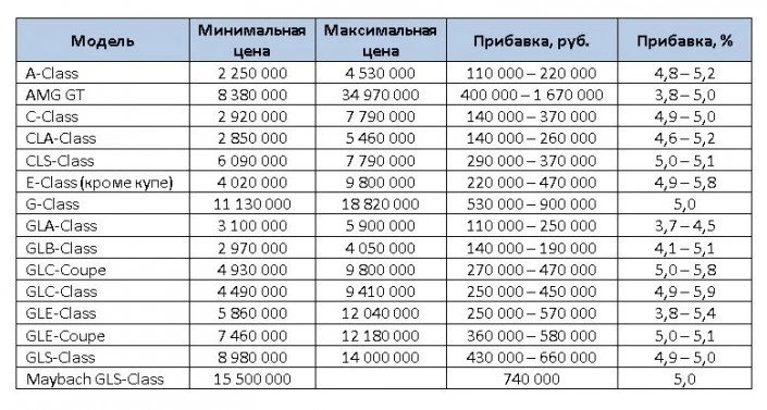 В России подорожало 15 из 17-ти моделей Mercedes-Benz, которые можно приобрести в нашей стране.