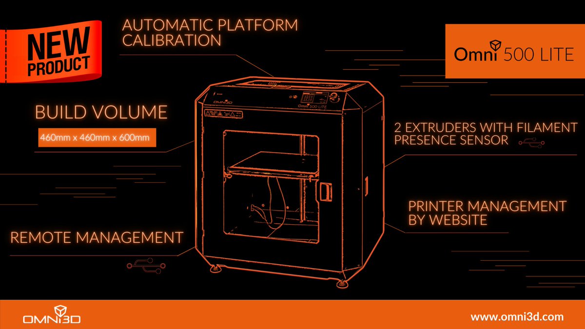 Профессиональный 3D-принтер Omni3D Omni 500 Lite представлен на рынке в конце 2019 года. Модель оптимизирована для работы с тугоплавкими материалами.