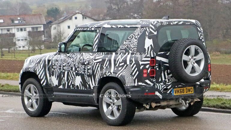 «Мул», попавший в объектив фотоаппарата, выполнен в «континентальном» исполнении, но имеет британские номера. Несмотря на плотный слой камуфляжа, видно, что его дизайн аналогичен 5-дверному Land Rover Defender 110.