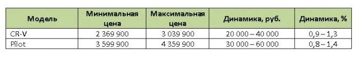 Ценники на компактный кроссовер Honda CR-V и премиальный внедорожник Pilot, и без того не отличавшиеся бюджетностью, сейчас «потяжелели» на 20 000 — 60 000 руб. Это составляет 0,8−1,4% от прежней стоимости машин.