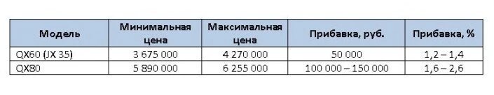Увеличились цены на две модели Infiniti