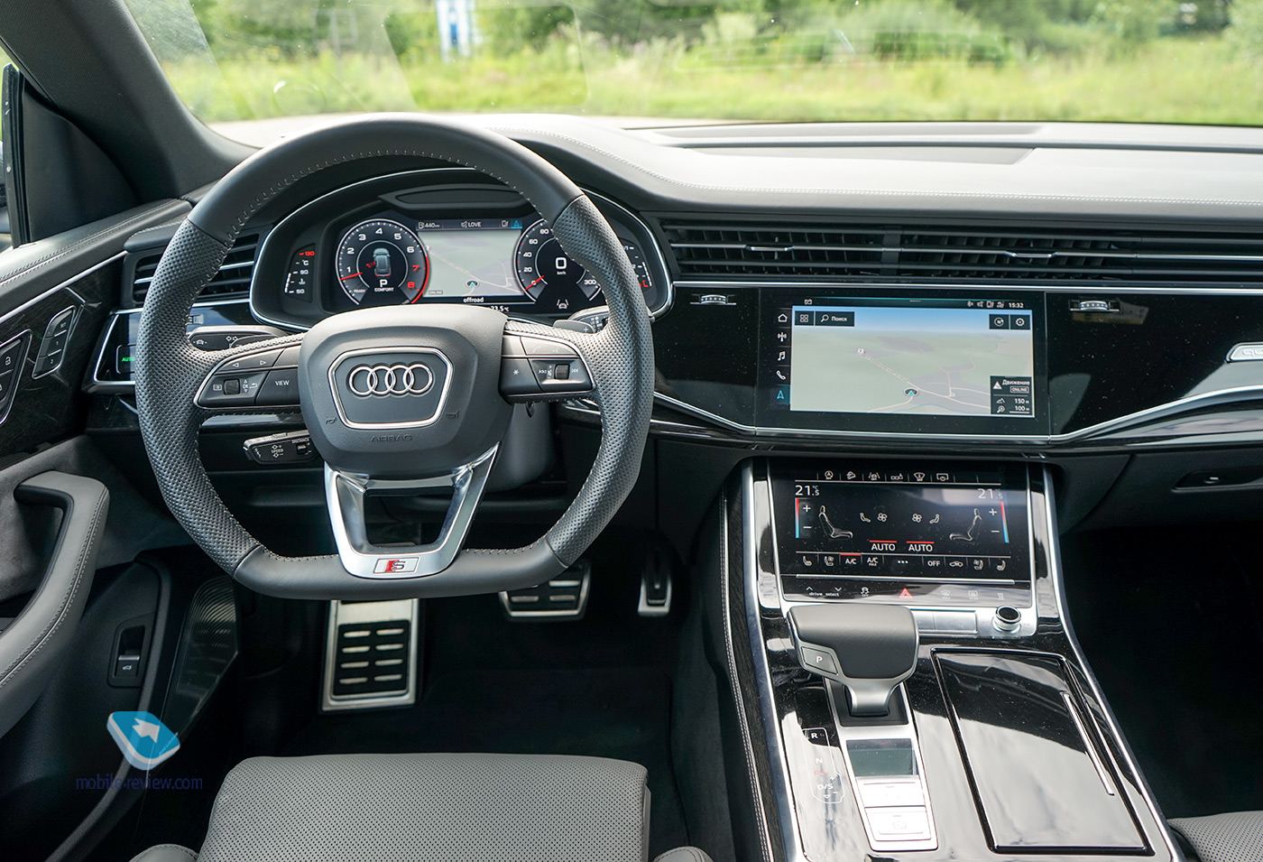 В штатное оснащение Audi RS Q8 входят полноуправляемое шасси с адаптивной пневмоподвеской, активным задним дифференциалом и 22-дюймовыми колёсами, а также светодиодные матричные фары, 4-зонный климат-контроль, электропривод 5-й двери и премиальная акустика Bang&Olufsen.
