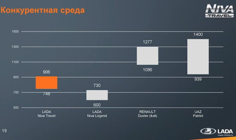 На авторынке нашей страны новинка поборется за место под Солнцем с соплатформенной Lada Niva Legend (экс-Lada 4×4), а также с флагманом Ульяновского автозавода «УАЗ Патриот» и популярным кроссовером Renault Duster. Это весьма серьёзные соперники — что им сможет противопоставить новинка из Тольятти?