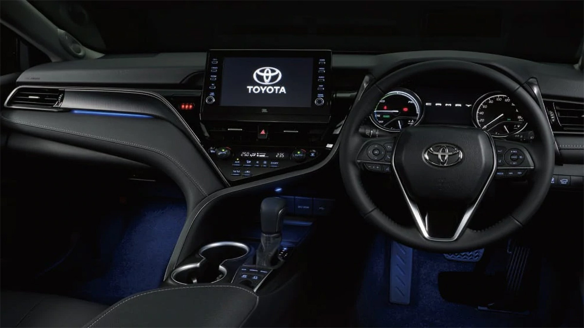 Облик Toyota Camry «посвежел» благодаря изменённым бамперам, увеличенной решётке радиатора и оптике новой конфигурации. В салоне появились 7-дюймовая цифровая «приборка» и «парящий» тачскрин диагональю в 9 дюймов.