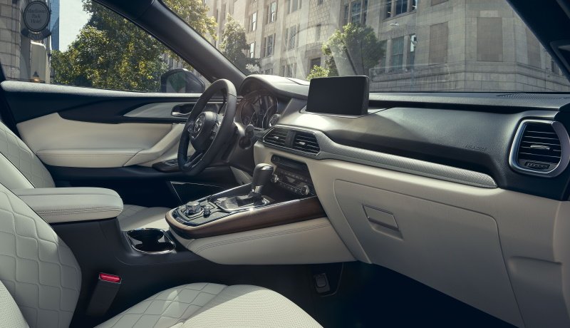 В штатное оснащение нового Mazda CX-9 входят адаптивный круиз-контроль, мультимедийная система с 8-дюймовым тачскрином, 3-зонный климат-контроль, беспроводная зарядка для гаджетов и много чего другого.