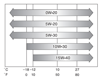 - Вязкость для бензиновых ДВС: 0W-20, 0W-30, 5W-20, 5W-30, 5W-40, 10W-30, 10W-40, для дизельных – до 5W-30, 10W-30, 5W-40.