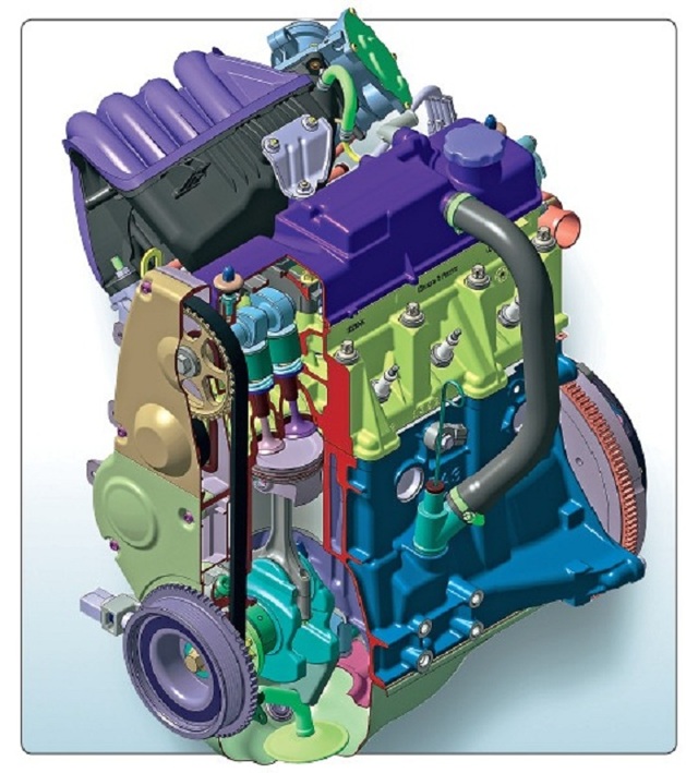 Это будет прежний 8-клапанный атмосферный бензомотор объёмом в 1,6 л. с рядным расположением 4-х цилиндров. Но он получит облегчённый коленчатый вал, усовершенствованную шатунно-поршневую группу, а также новый механизм газораспределительния.