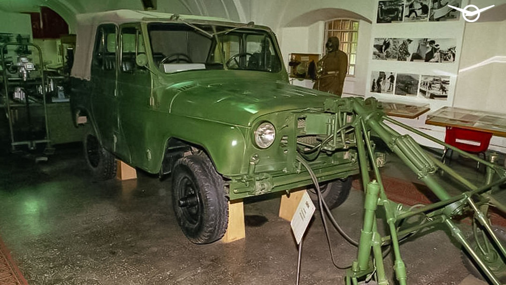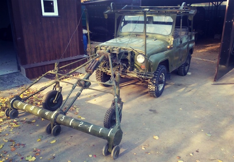 Внедорожник УАЗ-469 с двумя рулями обозначается как ДИМ — дорожный индукционный миноискатель. Идея здесь насколько проста, настолько и практична — впереди автомобиля едет выносная конструкция, которая выполняет функции миноискателя.