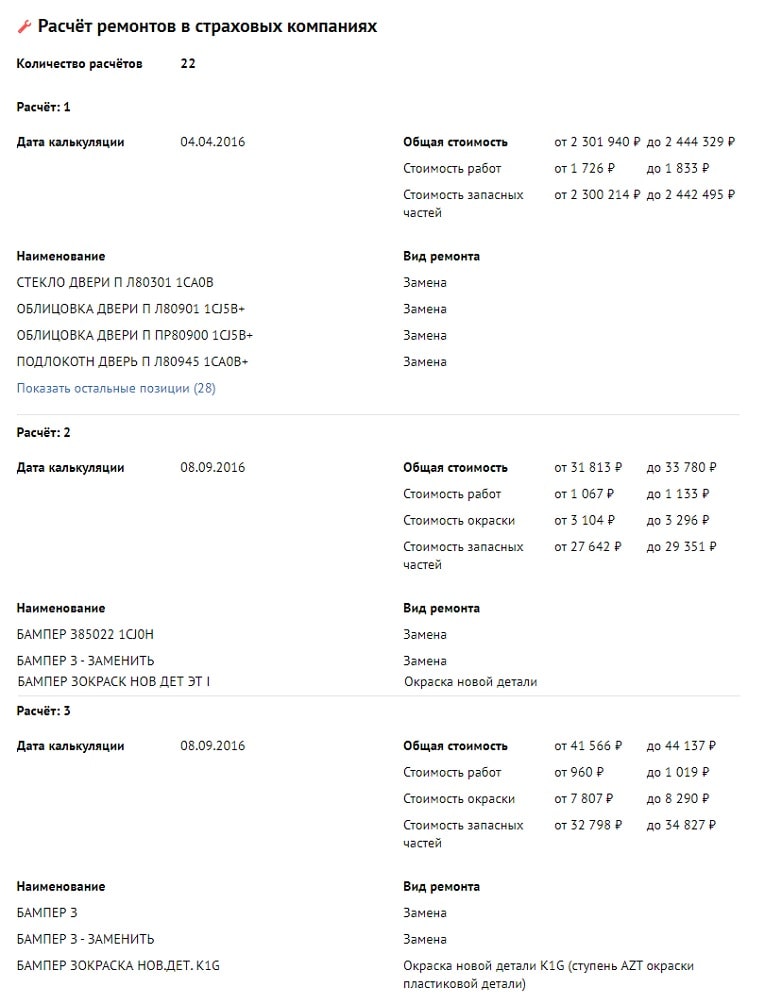 Автостраховщики за всё время дорожной жизни автомобиля выплатили на его ремонт около 2 500 000 руб. На эти средства неоднократно заменялись бамперы, наружные зеркала и оптика, а также решётка радиатора и двери, включая багажную.